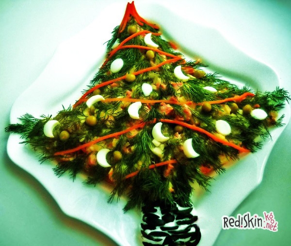 Украсить салат можете при помощи веточек зелени, причем из них можете, поверх салата выложить форму змейки, которая будет символизировать предстоящий год Змеи.